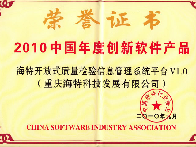 2010年9月3日,“2010中國軟件產(chǎn)業(yè)發(fā)展暨企業(yè)創(chuàng)新高峰會”在南京金陵會議中心揚子廳舉行。我公司“海特開放式質(zhì)量檢驗信息管理系統(tǒng)平臺(TIS)V1.0”在此次會議上獲得了中國十大創(chuàng)新軟件產(chǎn)品的殊榮。